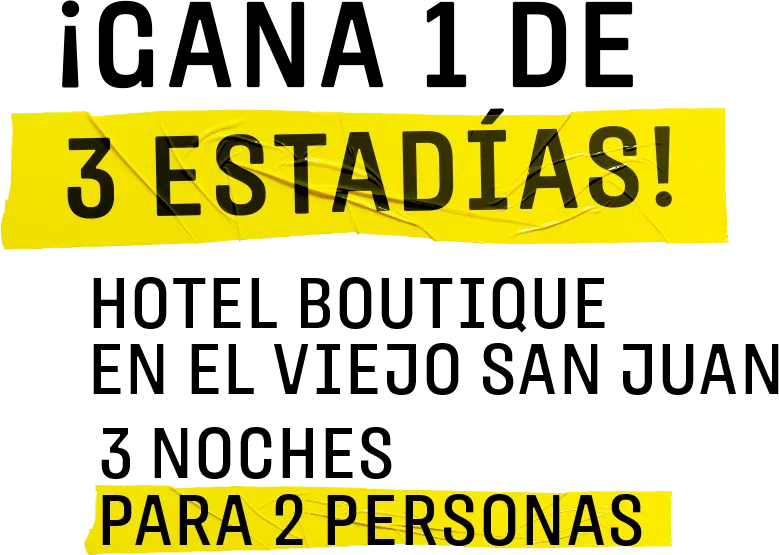 Promoción válida del 15 de noviembre de 2025 al 4 de enero de 2026. Solo para mayores de 21 años. Nada que comprar para participar. Esta promoción no está afiliada, avalada, ni patrocinada por el Municipio de San Juan ni por la producción oficial de las Fiestas de la Calle San Sebastián. Detalles en Reglas Oficiales.